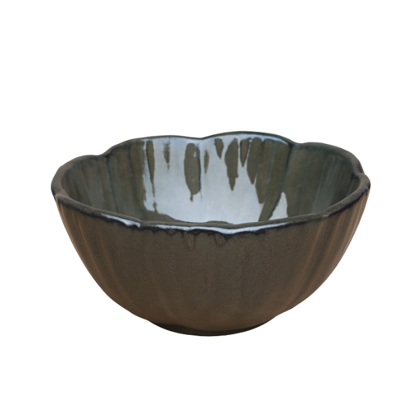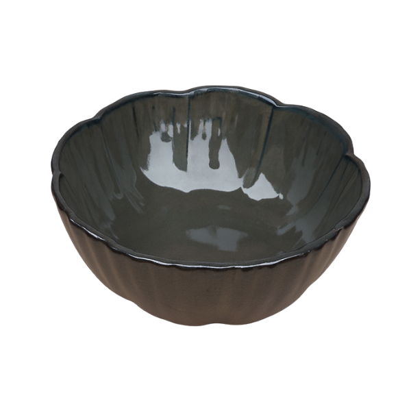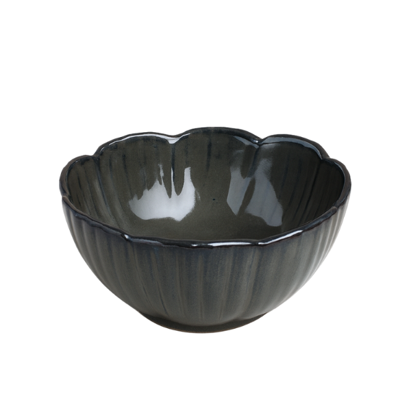 Ceramic Fluted Serving Bowl – Charcoal Gray Glaze