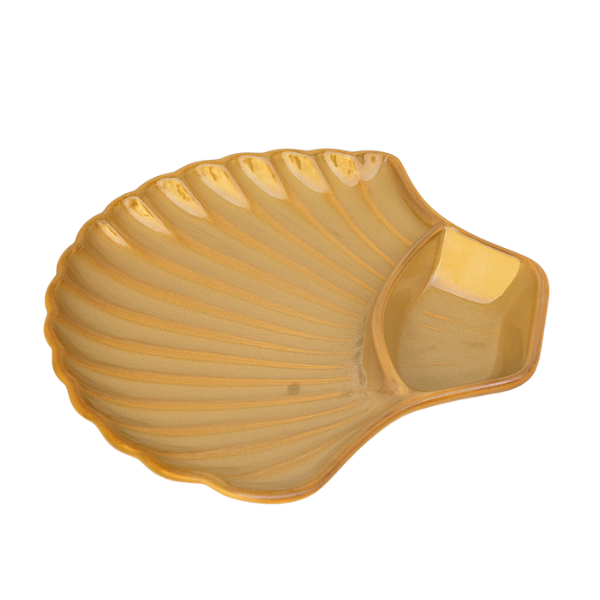 Design: Shell-inspired plate with built-in dip bowl section