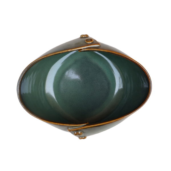 Handcrafted Ceramic Bowl with Button Detail – Emerald Green Glaze