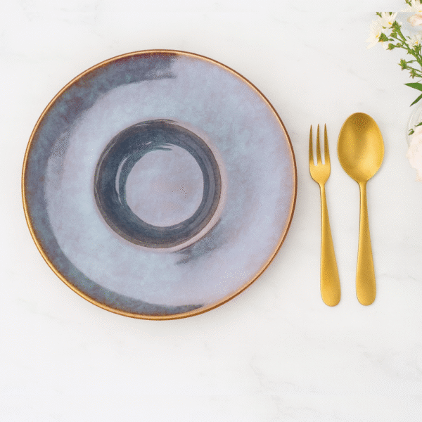 Handcrafted Ceramic Pasta Plate – Multitone Glazed Finish with Golden Rim