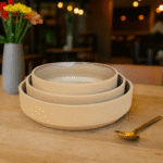 Handcrafted Ceramic Serving Bowls – Set of 3, Warm Beige Glazed Finish