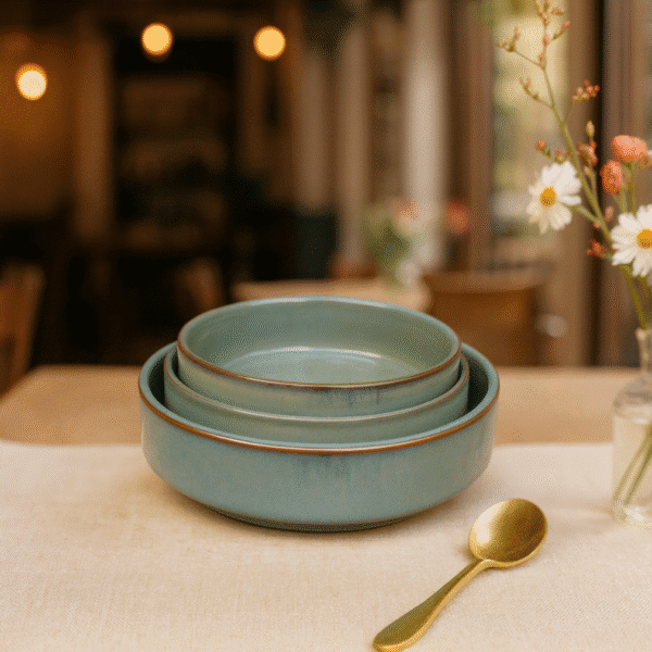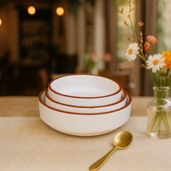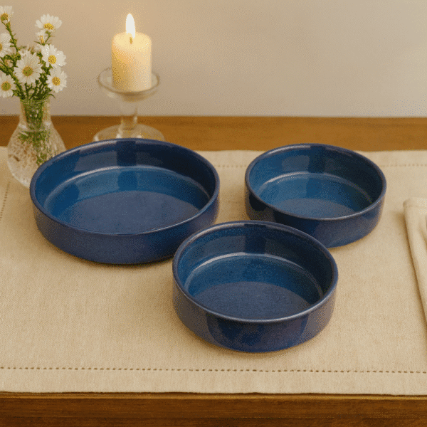 These bowls are a part of the designer ceramics curated by RNS Global Ceramics, which are well coordinated with the plates, cups, and other serving bowls in the brand. Long-lived, easy washing, visually polished, this ceramic serving bowl set is perfect in daily meals, at-home entertainment, cafes, and in high-end dining areas in search of a genuine handcrafted serveware based on the Khurja craftsmanship.