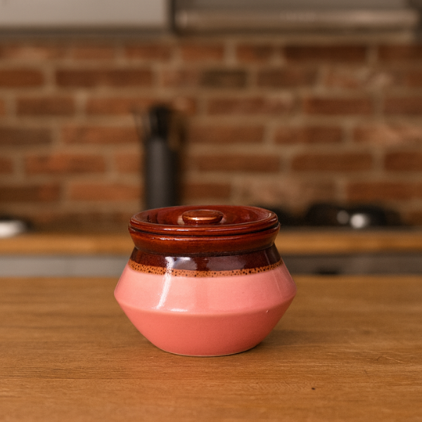 Handcrafted Dual-Tone Ceramic Jar with Lid – Brown & Coral Pink set of 2 pcs