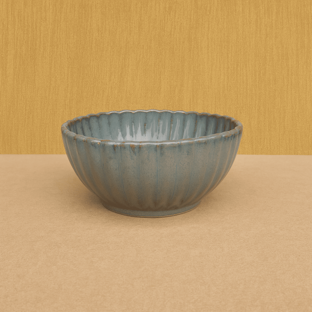 Handcrafted Fluted Ceramic Bowl – Ocean Blue Glazed Finish