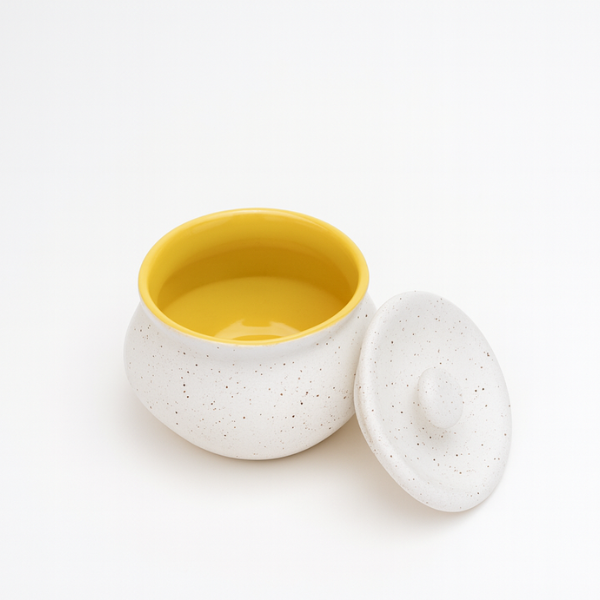 Handcrafted Speckled White Ceramic Jar with Mustard Yellow Interior and Lid set of 2 pcs