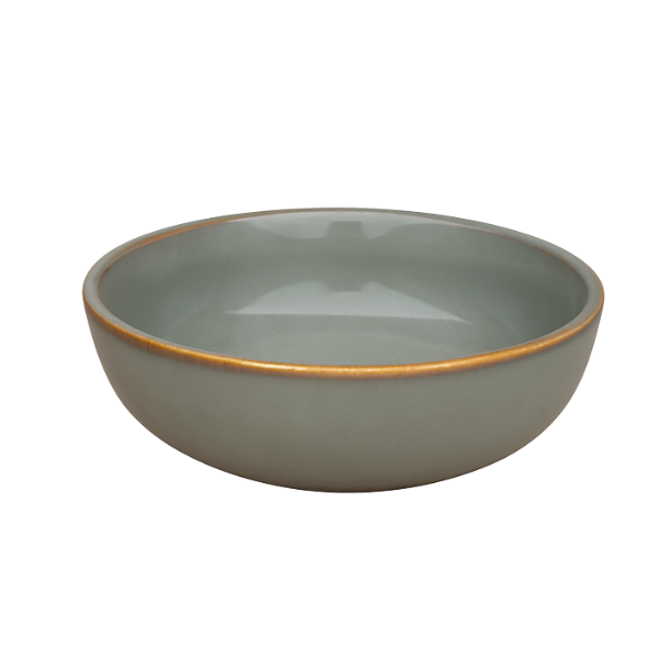 Matte sage green glaze gives a soothing, modern base palette, while the manual-cutting amber rim adds a definition of sophistication to the entire design. This thoughtful interaction among colors also gives the bowl a versatile as well as unique placement within high-quality ceramic tableware designs. Such a bowl is perfectly proportioned for serving soup, salad, grains, dessert, or shared dishes along with other serving bowls.