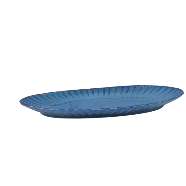 Midnight Blue Oval Ceramic Serving Platter – Textured Glazed Stoneware