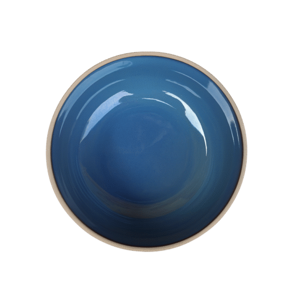 Through a balance of mat and blue colors, it creates a contrasting effect that does not in any way overwhelm the table setting. It also has a modern design and can be easily incorporated into high-end ceramic dinnerware lines and used for serving soups, salads, grains, desserts, and joint sides. It can blend perfectly with other serving bowls while at the same time making a design statement due to its colors.