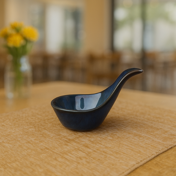 Set of 6 Ceramic Soup & Sauce Spoons – Midnight Blue Glaze