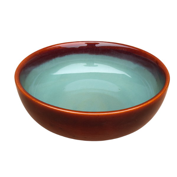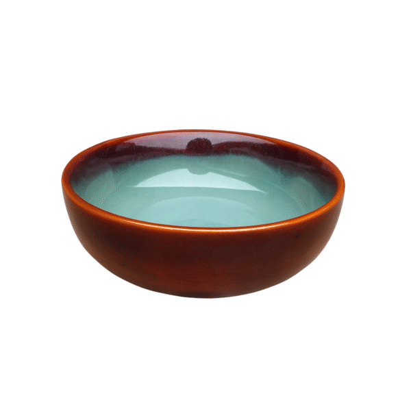 Two-Tone Glazed Ceramic Bowl – Teal Interior & Burnt Amber Exterior